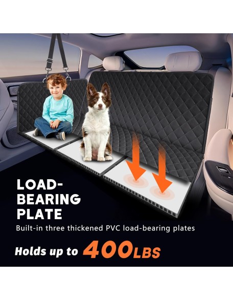 - 【Upgraded Removable Hard Base Plate with 400 lbs Weight Capacity】: Our dog car seat covers for backseat come with a thicker PVC Load-bearing plate, which can support up to 400lbs. This feature ensures that our product supports all dog breeds while being more wear-proof and waterproof than traditional wooden boards. Our dog car seat cover also includes a removable feature for easy cleaning.