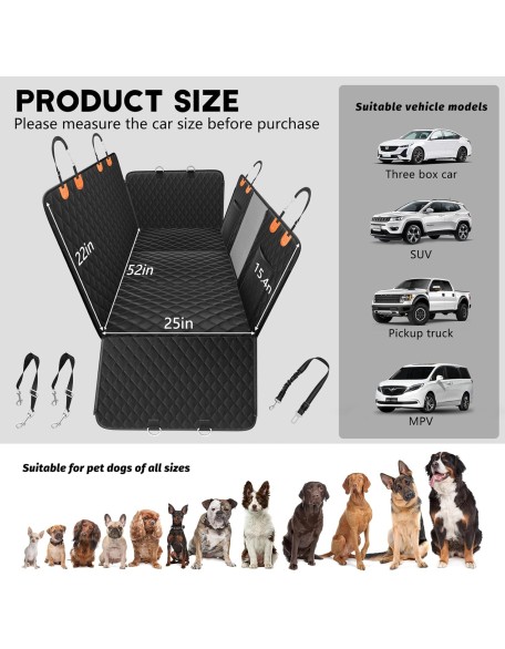 - 【Breathable Mesh Visual Window and Storage Pockets】: Our back seat pet cover for dogs comes with a breathable mesh window, which reduces anxiety, improves airflow, Our mesh window also comes equipped with non-slip zippers on both sides and allows your dog to see and interact with you during car rides . Additionally, our dog car seat cover for back seat includes two large storage pockets, ideal for storing your dog's toys and snacks.